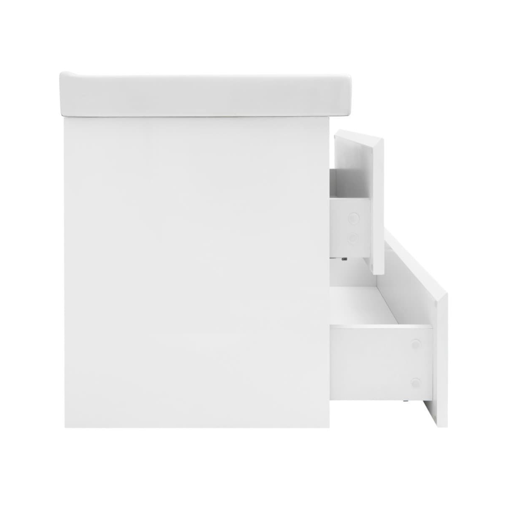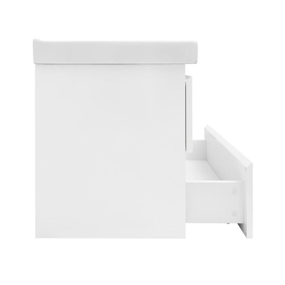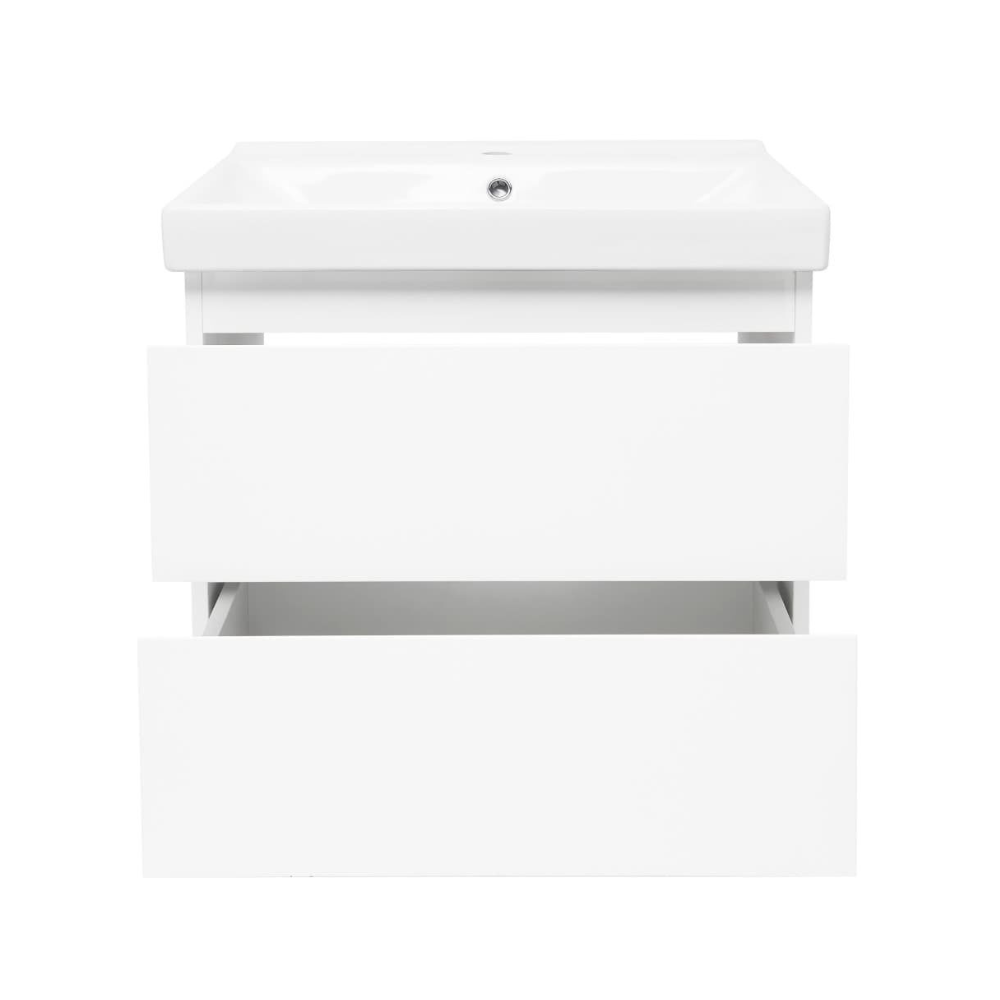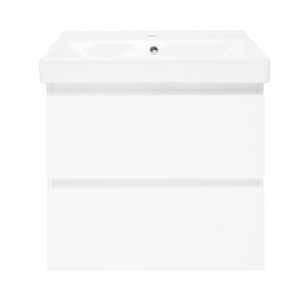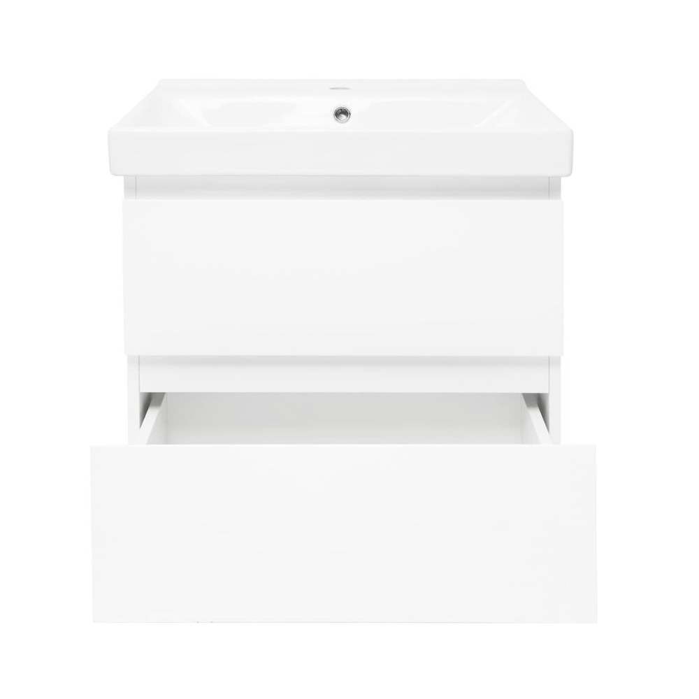 Swiss Aqua Technologies B-Way 59x50x45 cm meuble de salle de bain suspendu 2 tiroirs avec lavabo en céramique, blanc brillant (BWAY260WU1BI)