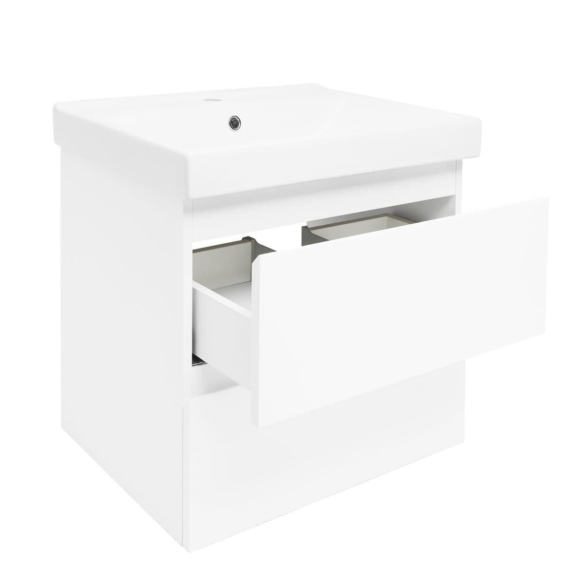 Meuble salle de bain suspendu 59 x 50 x 45 cm avec lavabo céramique – 2 tiroirs – blanc brillant – B-Way (BWAY260WU1BI)