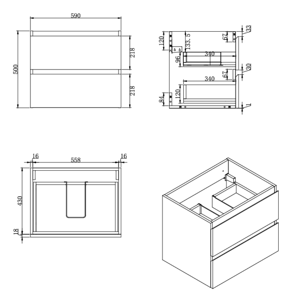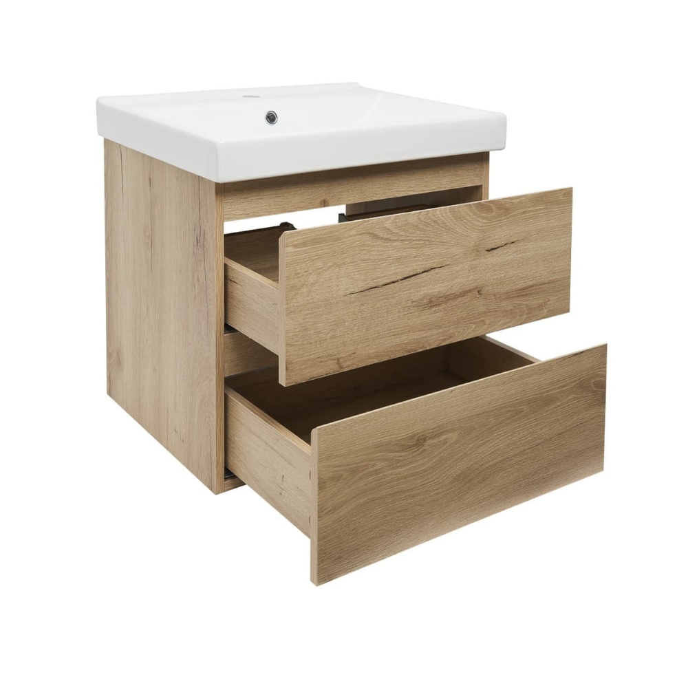 Caractéristiques du meuble de salle de bain suspendu 59x50x45 cm 2 tiroirs avec lavabo en céramique, Swiss Aqua Technologies B-Way, chêne mat (BWAY260OAKUU1) :