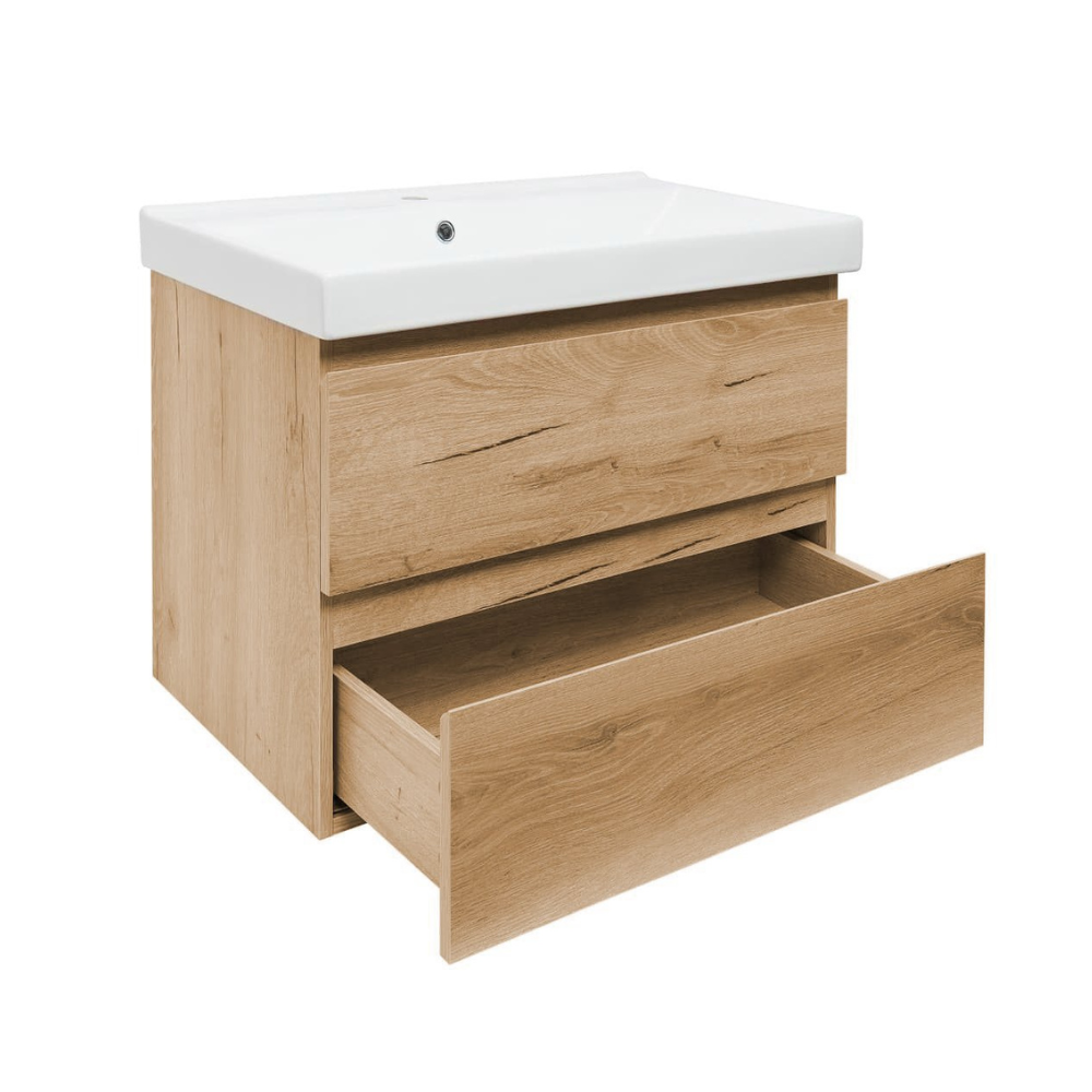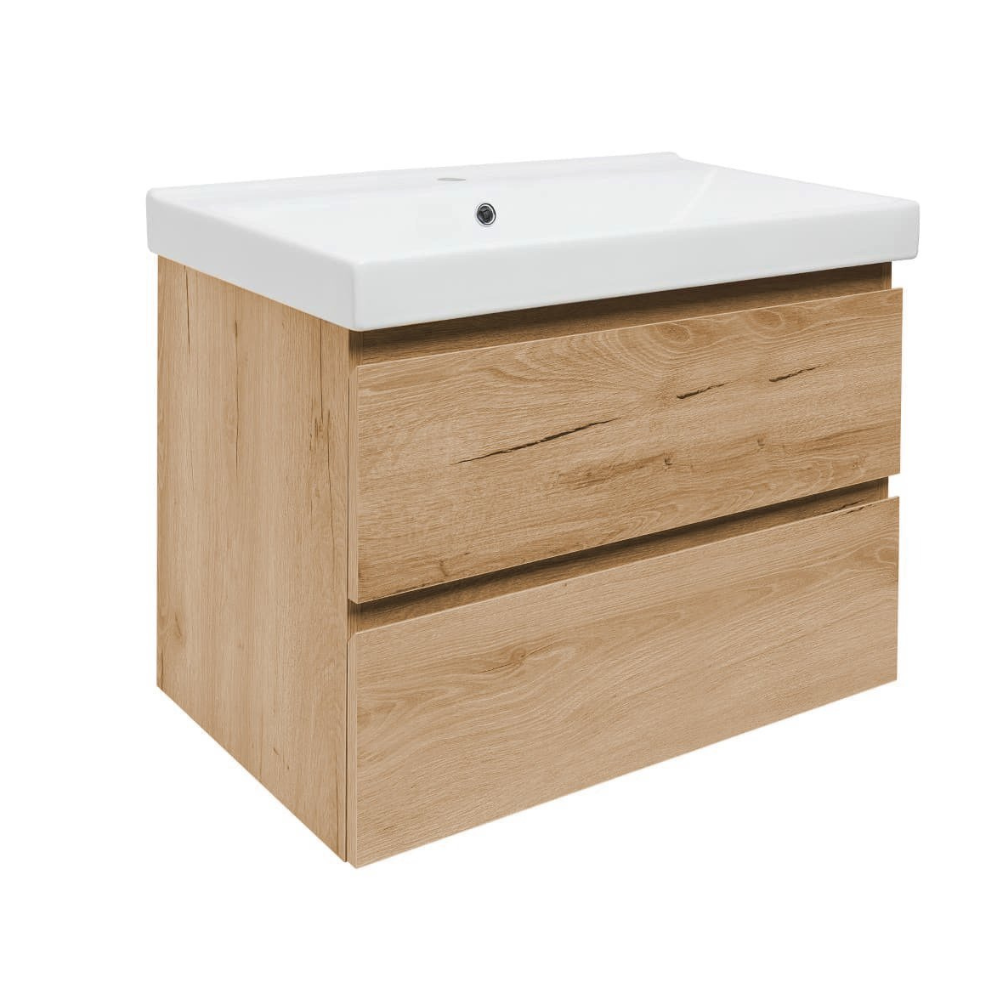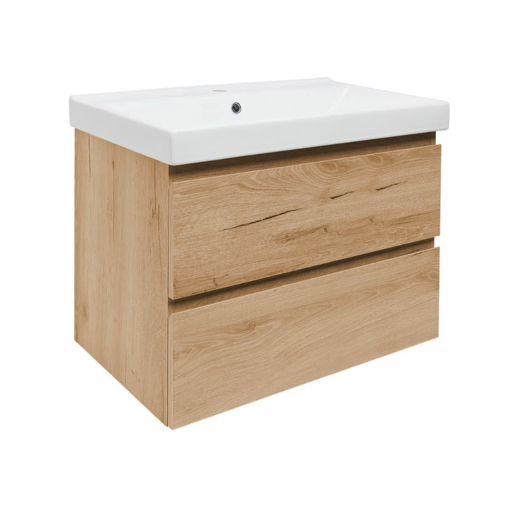 Swiss Aqua Technologies B-Way 79x50x45 cm meuble de salle de bain suspendu 2 tiroirs avec lavabo en céramique, chêne mat (BWAY280OAKU1BI)