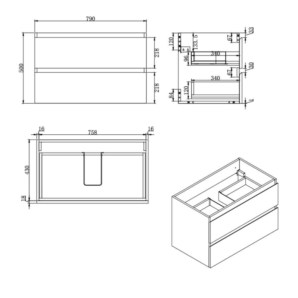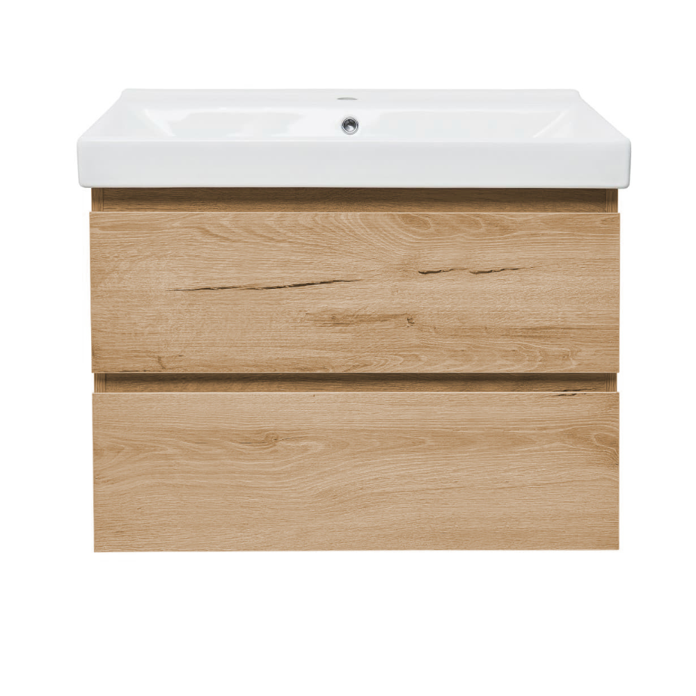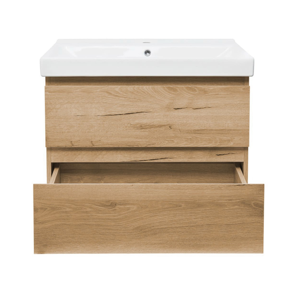 B-Way 79x50x45 cm caractéristiques du meuble de salle de bain suspendu 2 tiroirs avec lavabo en céramique, chêne mat (BWAY280OAKU1BI) :