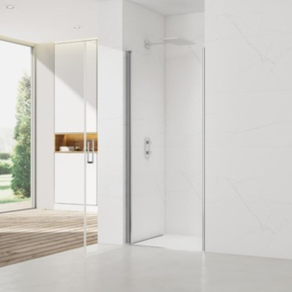 - Swiss Aqua Technologies Fusion by Siko Porte de douche 100x196 cm transparente Easy Clean, ouverture à pivot, chrome (SATFUD100CRT)
