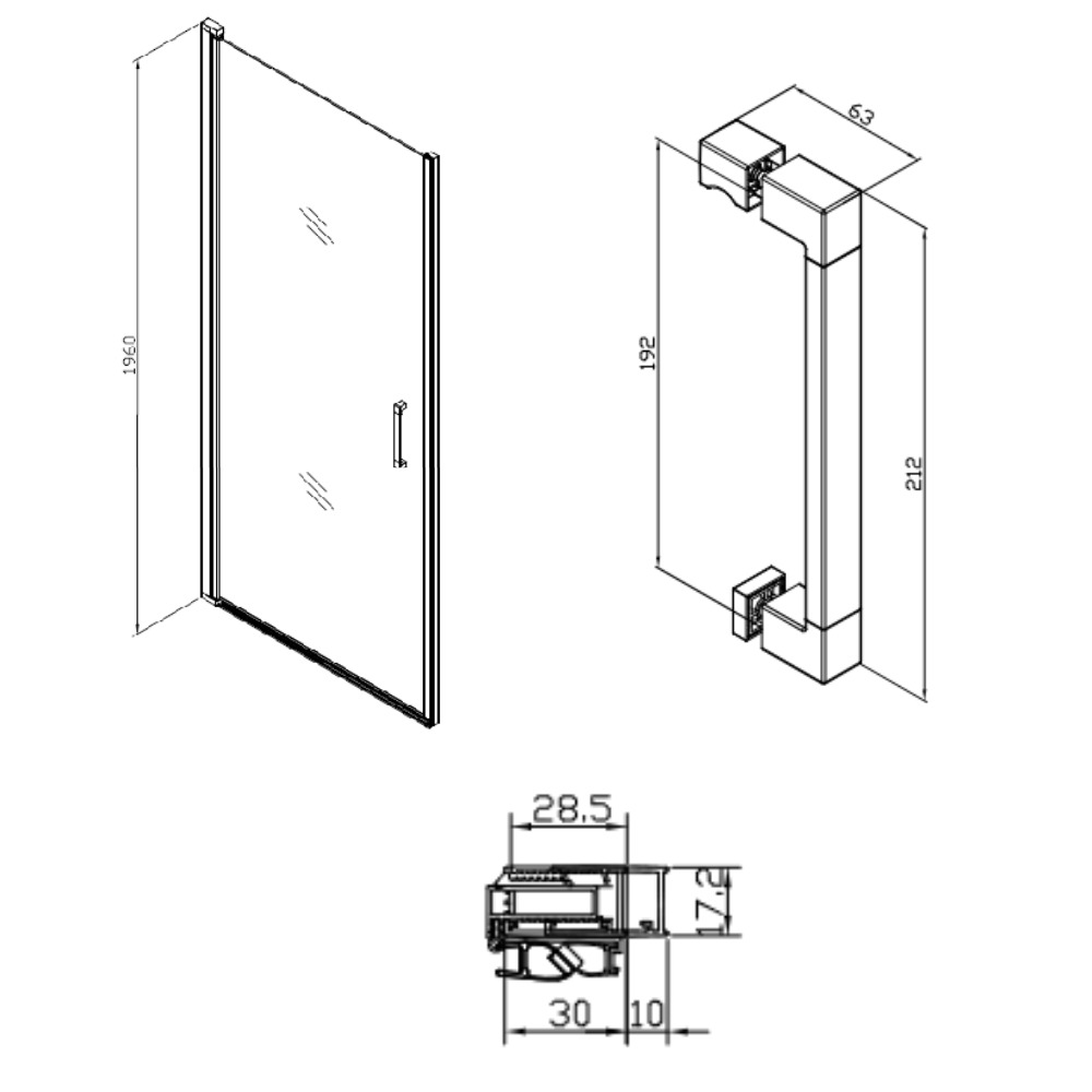 Set Porte de douche 100x196 cm transparente + Profilé pour paroi de douche + Poignée pour porte de douche (SATFUD100NIKA)