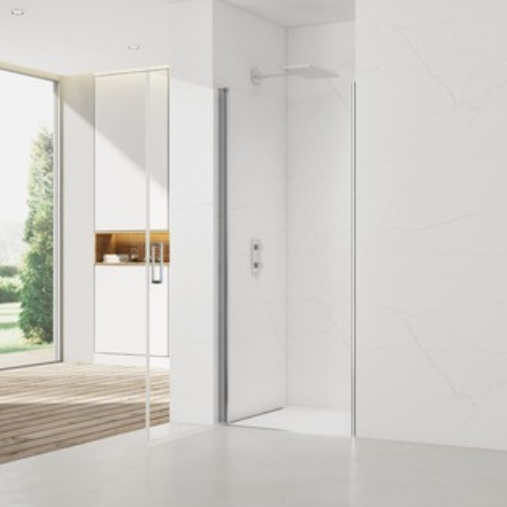- Swiss Aqua Technologies Fusion by Siko Porte de douche 100x196 cm transparente Easy Clean, ouverture à pivot, chrome (SATFUDP100CRT)