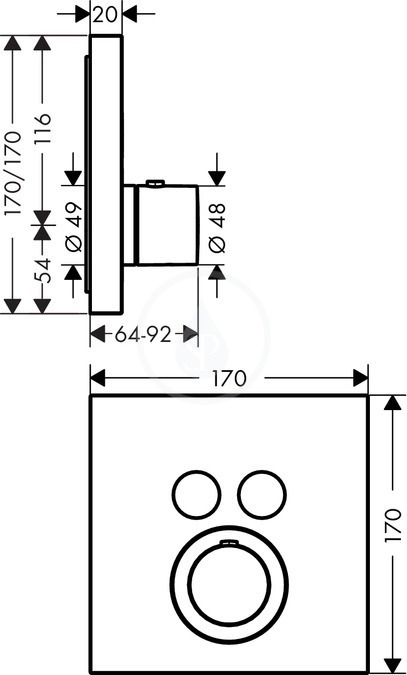 Axor Set de finition pour mitigeur thermostatique ShowerSelect Square encastré avec 2 sorties (36715000)