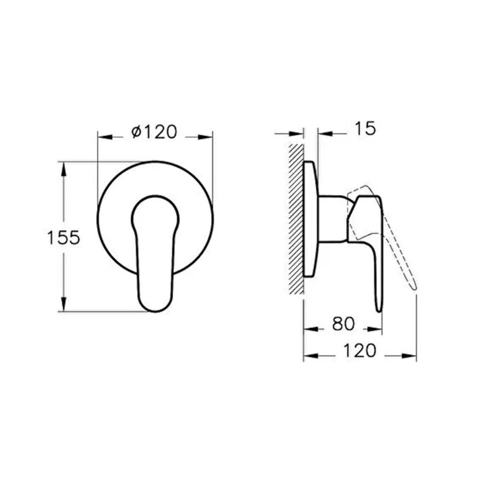 Caractéristiques du mitigeur de douche à encastrer, à levier, vendu sans corps d'encastrement, Vitra Root Round, chrome (A42728EXP) :
