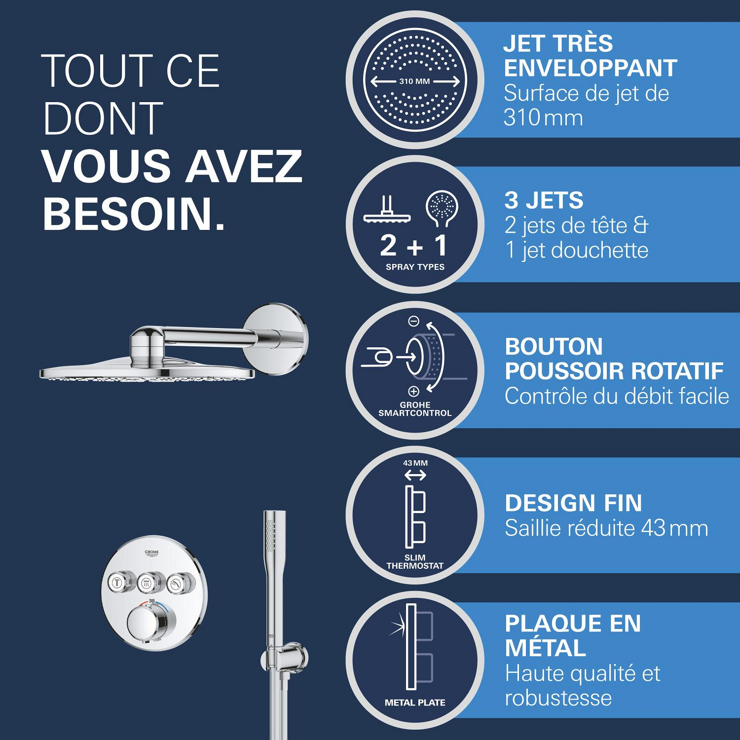 Grohe Precision SmartControl Set de douche encastrée avec façade thermostatique + Douche de tête 2 jets + Douchette (G34874000)