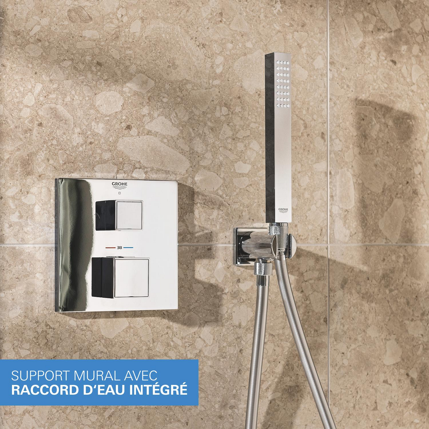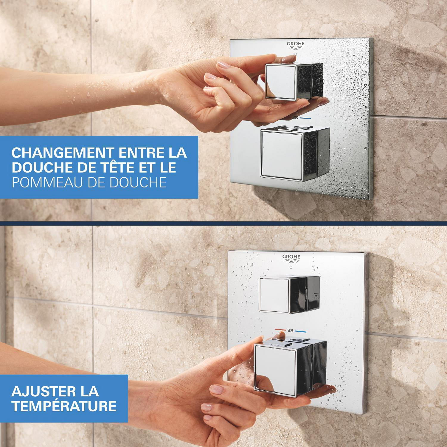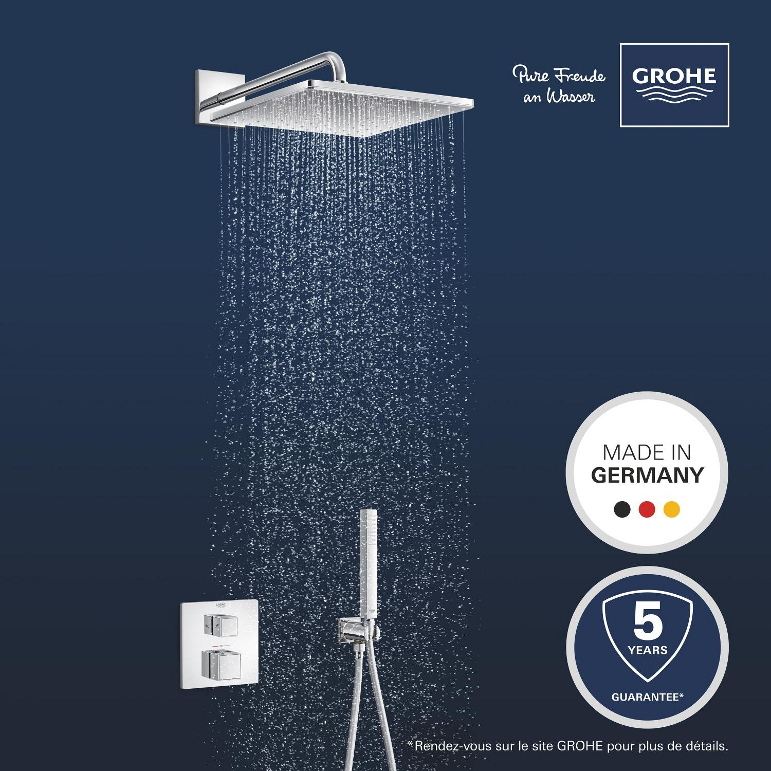 Grohe Precision Cube Set de douche encastrée avec mitigeur thermostatique + Douche de tête + Douchette, chrome (G34879000)