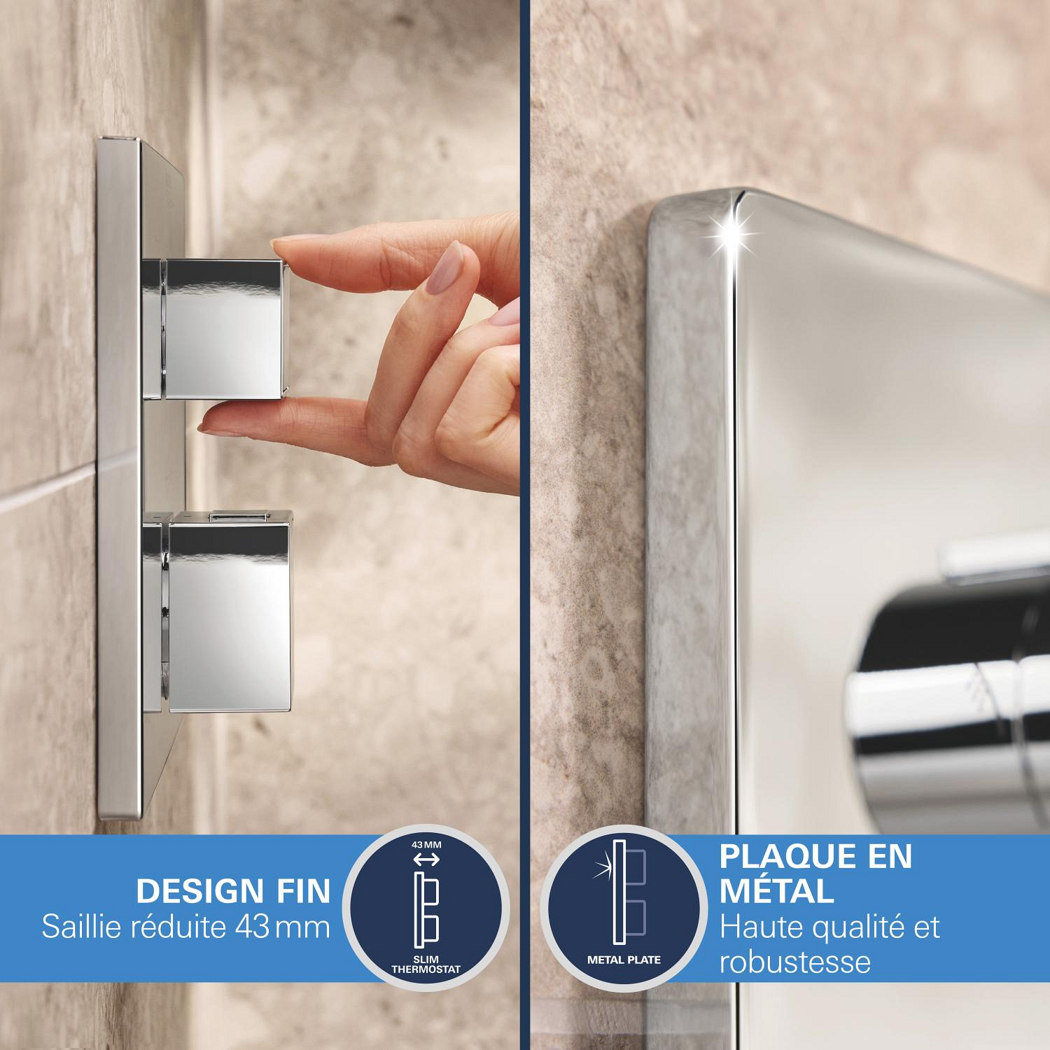 Caractéristiques du Set de douche encastrée avec mitigeur thermostatique + Douche de tête + Douchette, chrome Grohe Precision Cube (G34879000) :