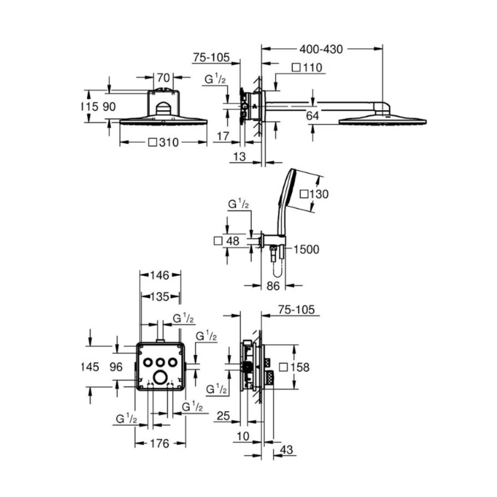 - Type de produit: Ensemble de douche à encastrer