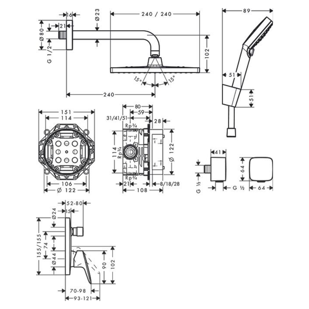 Crometta E ensemble de douche à encastrer avec mitigeur monocommande, vendu avec corps d'encastrement, chrome (27957000)