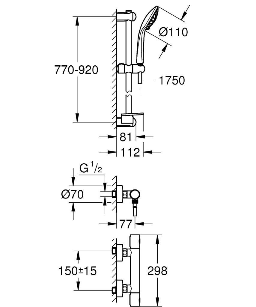 Grohe Grohtherm 1000 Cosmopolitan - Thermostat mitigeur de douche M, douche réglé 900 mm, chrome (34321002)