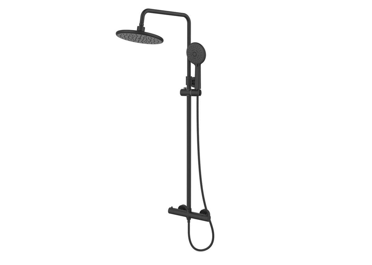 Basic ensemble de douche avec mitigeur thermostatique, douche de tête, douchette à main, noir mat (SATSSTKEBC)