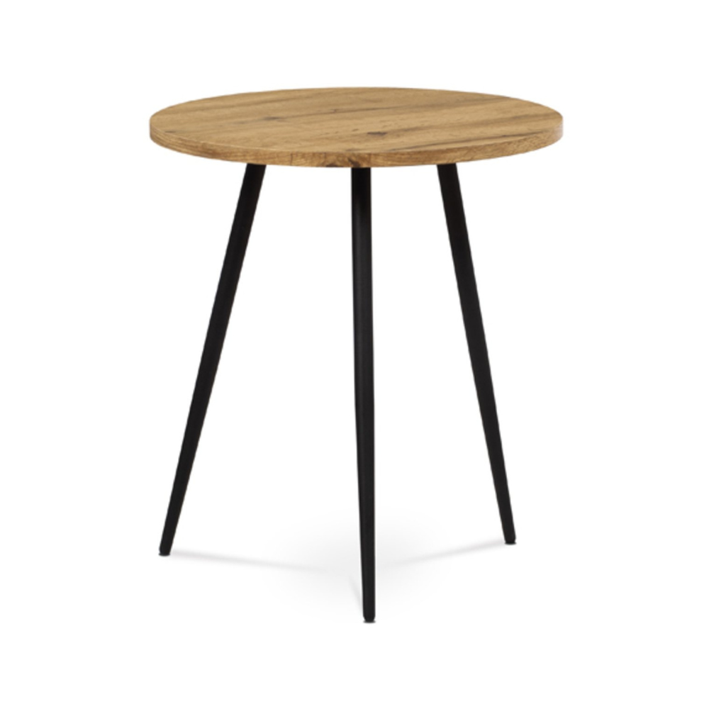 Caractéristiques de la mini-table basse ronde de salle à manger en bois MDF marron 40x40x45 cm, design industriel, pieds coniques en métal noir laqué, Autronic (AF3005OAK) :