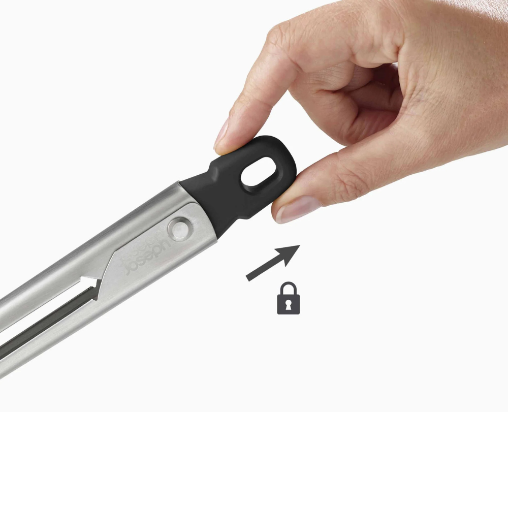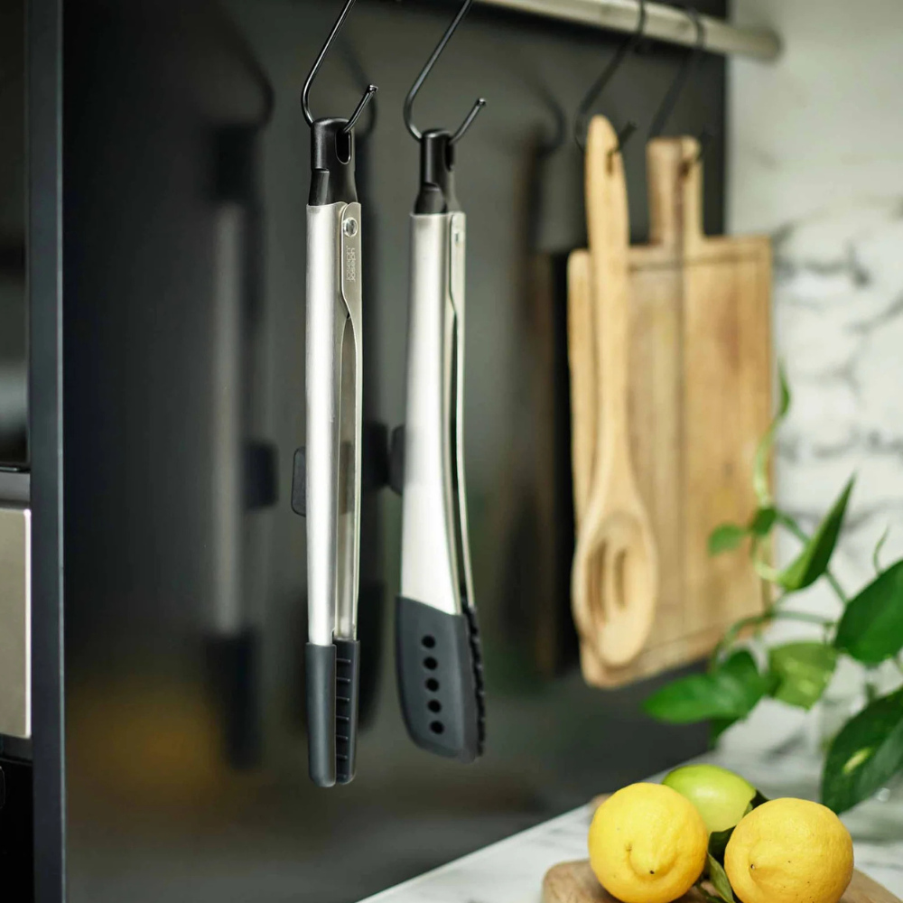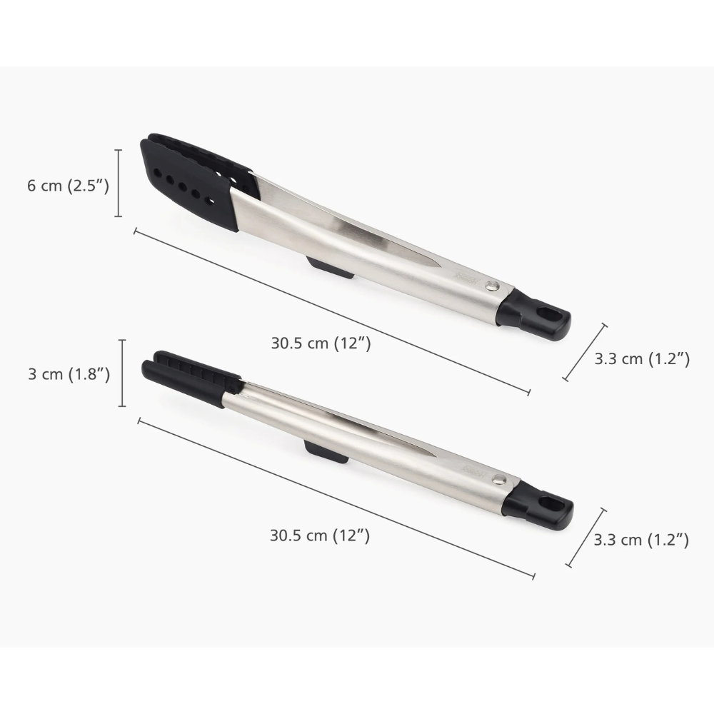 Joseph Joseph Elevate™ Fusion ensemble de 2 pinces en acier inoxydable et silicone avec porte-outils intégré, gris (10573)