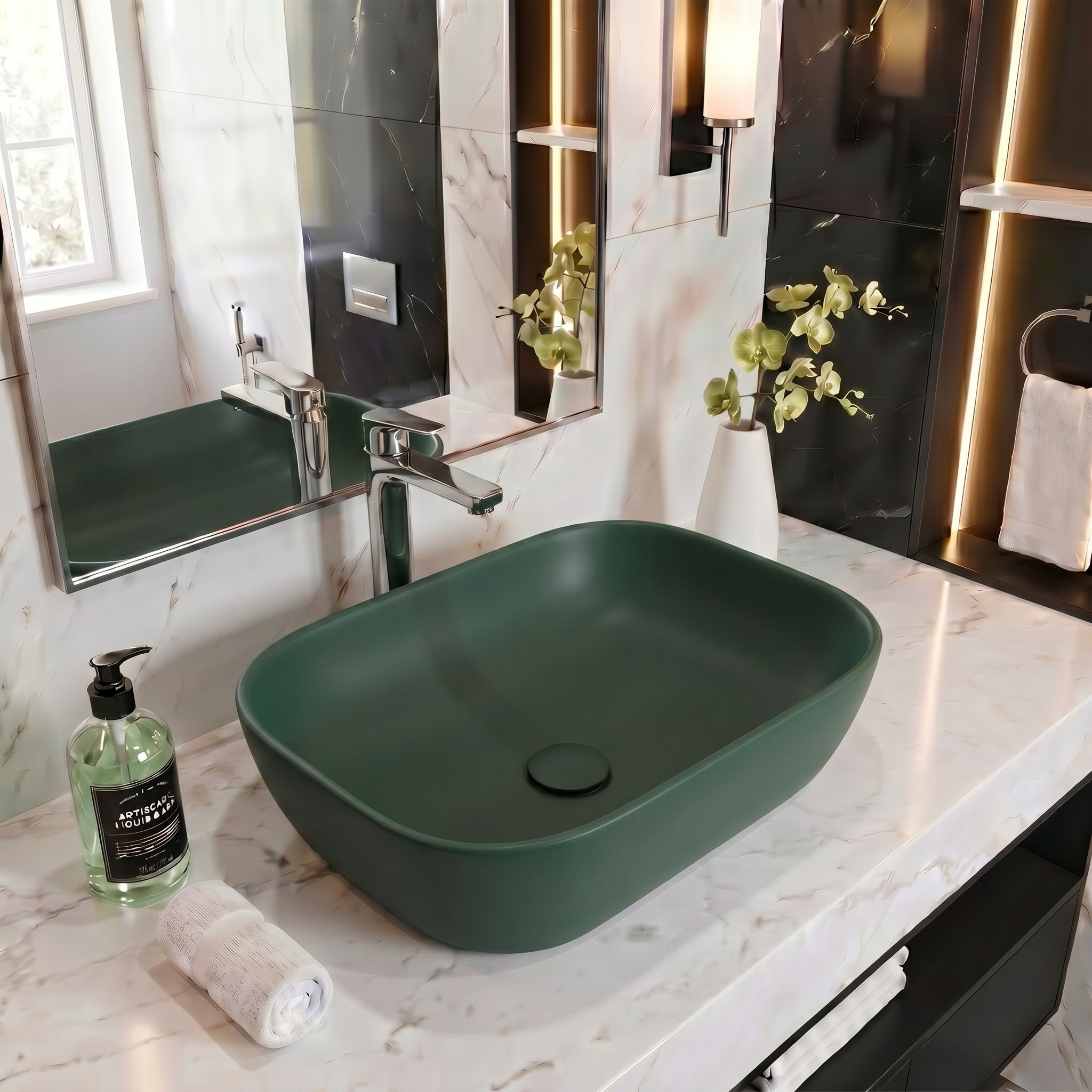 Choisissez l'Élégance et l’Originalité avec la Vasque à Poser SATINF4532DGEM VERT FONCÉ MAT (SATINF4532DGEM)