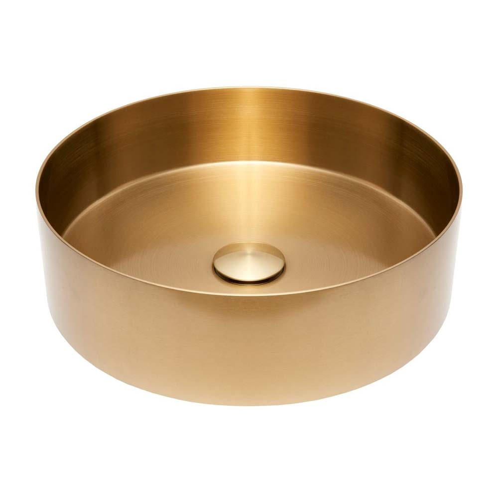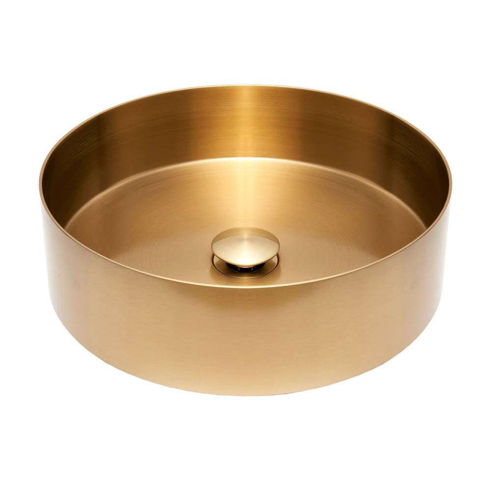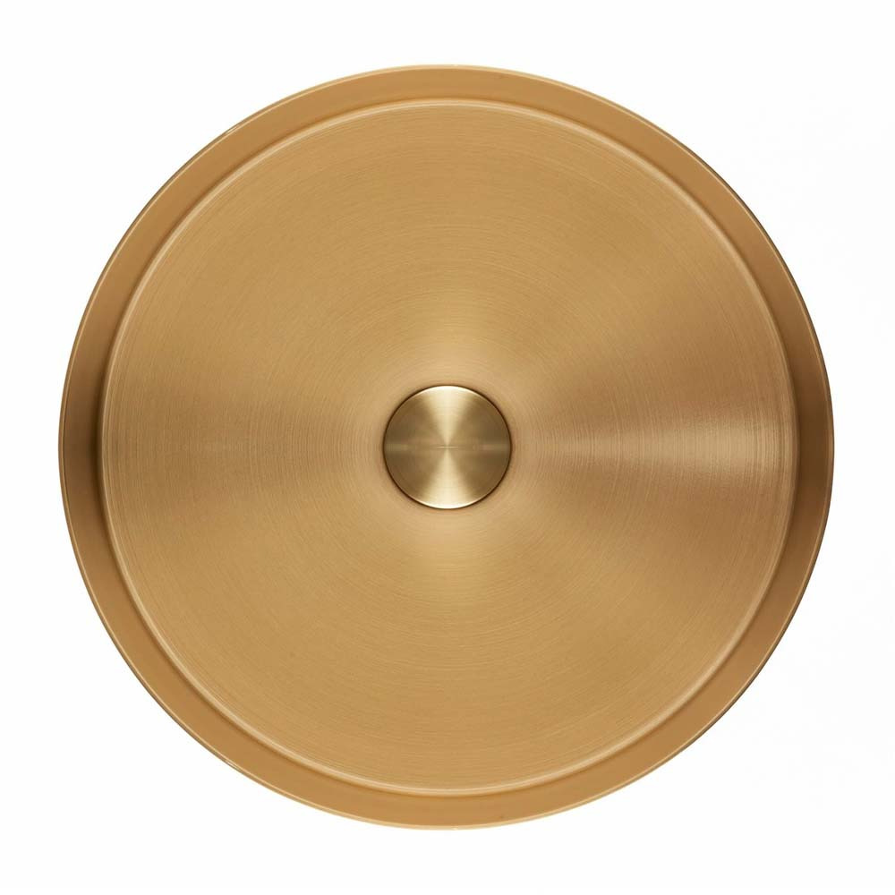 Vasque à poser 38 x 38 x 11 cm Aurum doré brossé en acier inoxydable avec bonde incluse sans trop-plein (SATAUR3838BG)