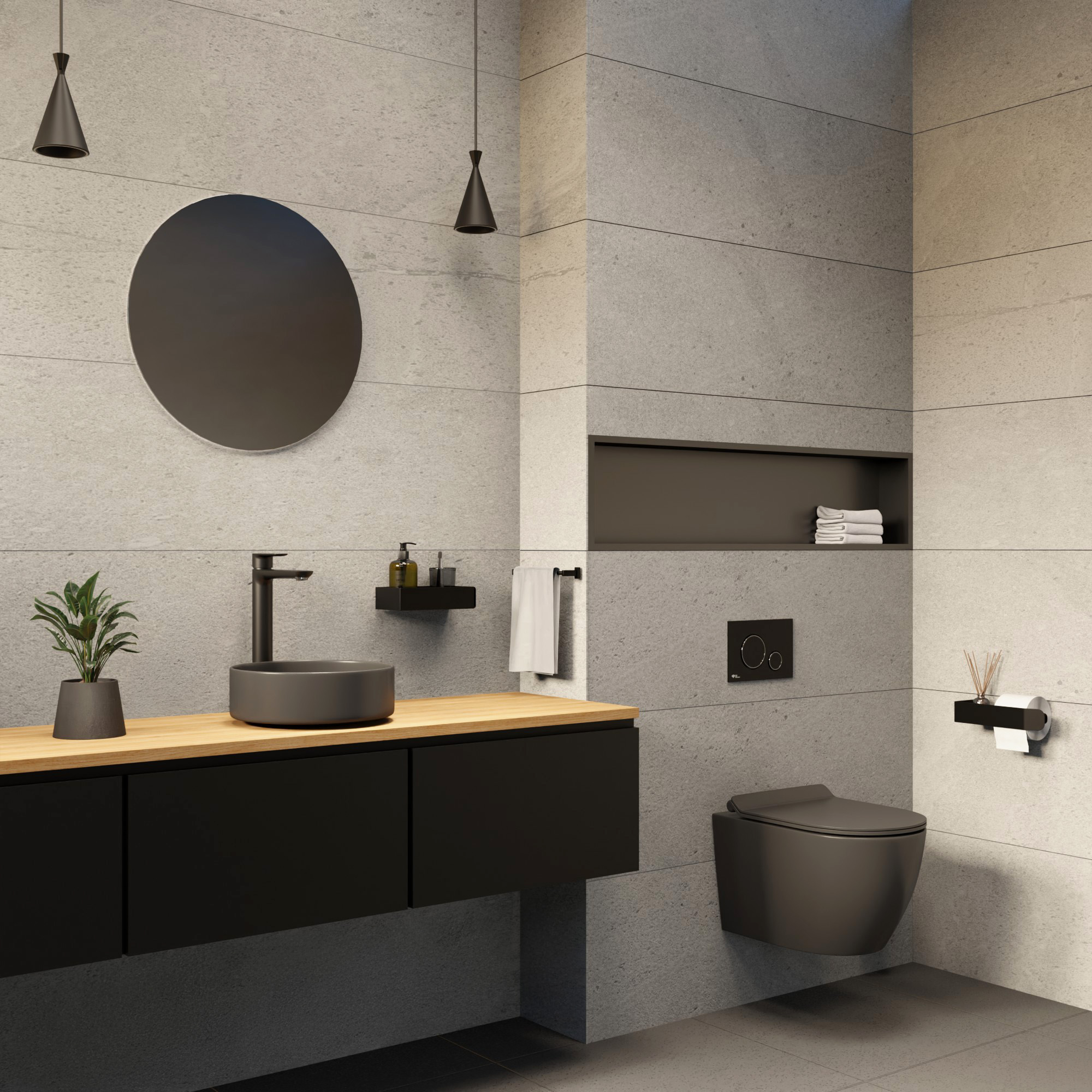La vasque à poser ronde Ceramia PixL 36 cm séduit par son design fin et minimaliste, idéal pour les petites salles de bain et WC. Avec son diamètre de 36 cm et sa hauteur de 12,5 cm, elle optimise l’espace tout en apportant une touche contemporaine. Sa finition gris mat reflète la lumière et s’intègre facilement dans tous les styles d’aménagement.