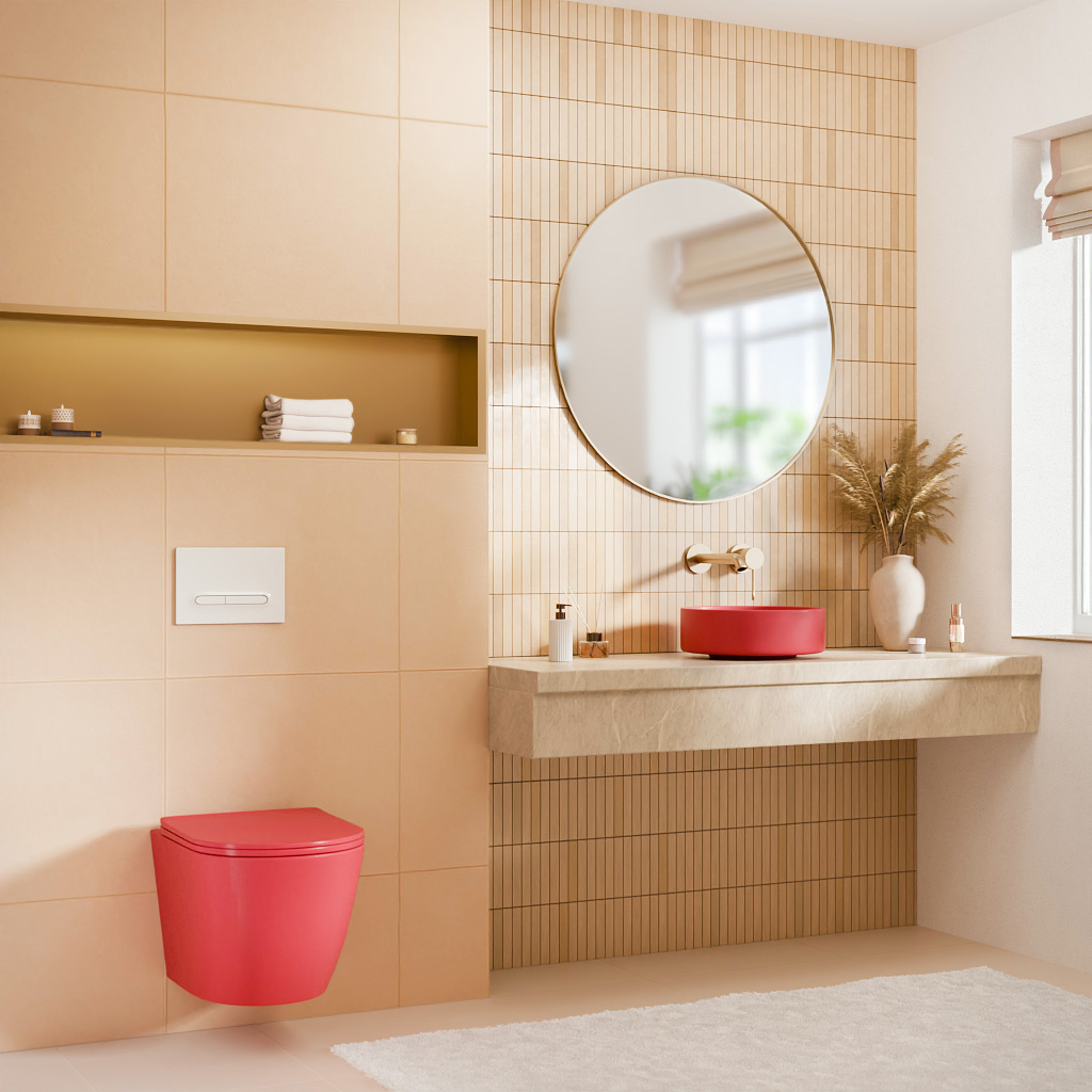 La vasque à poser ronde Ceramia PixL 36 cm séduit par son design fin et minimaliste, idéal pour les petites salles de bain et WC. Avec son diamètre de 36 cm et sa hauteur de 12,5 cm, elle optimise l’espace tout en apportant une touche contemporaine. Sa finition rose mat reflète la lumière et s’intègre facilement dans tous les styles d’aménagement.