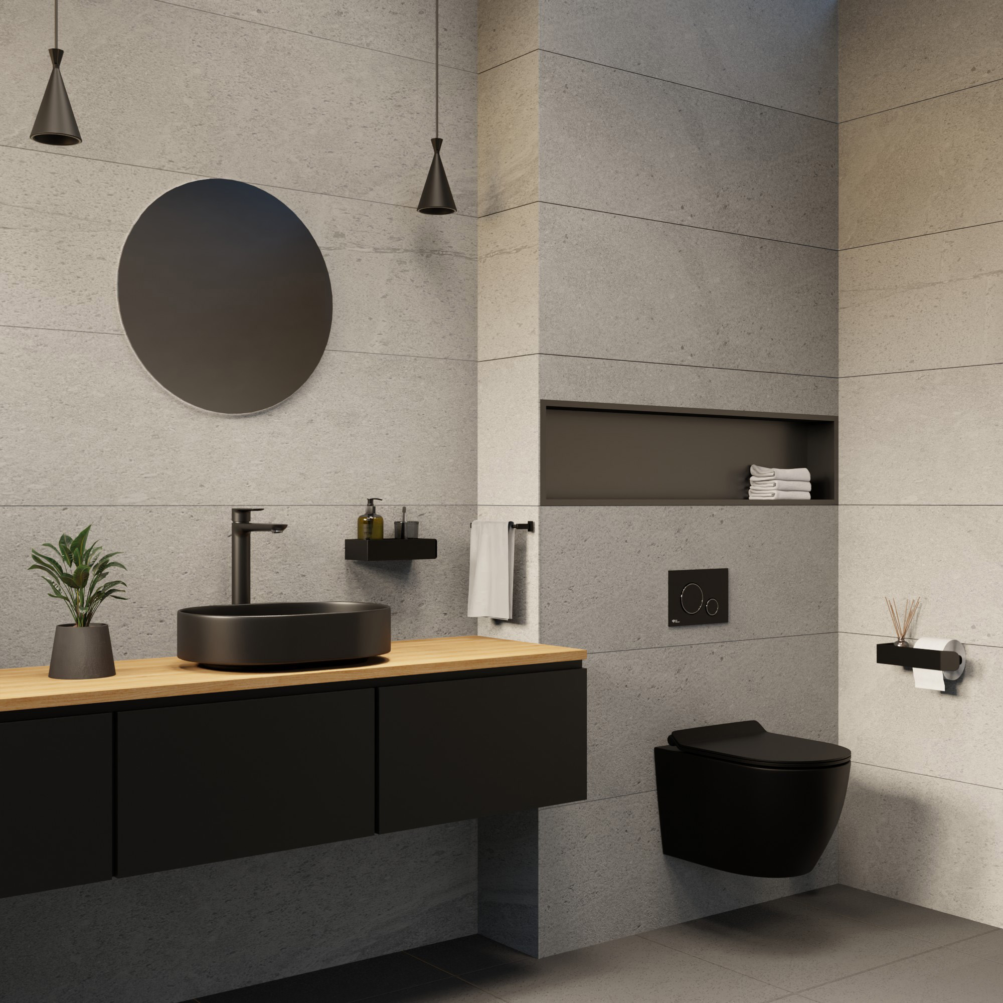 • Format 50 cm idéal pour salle de bain contemporaine