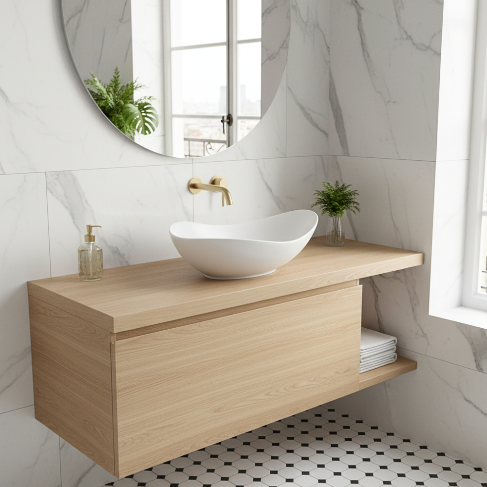 Sans trop-plein, elle offre une esthétique pure et s’associe parfaitement avec une bonde libre ou clic-clac (non incluse). Son installation à poser est simple et rapide, idéale pour les projets de rénovation ou les créations sur mesure.