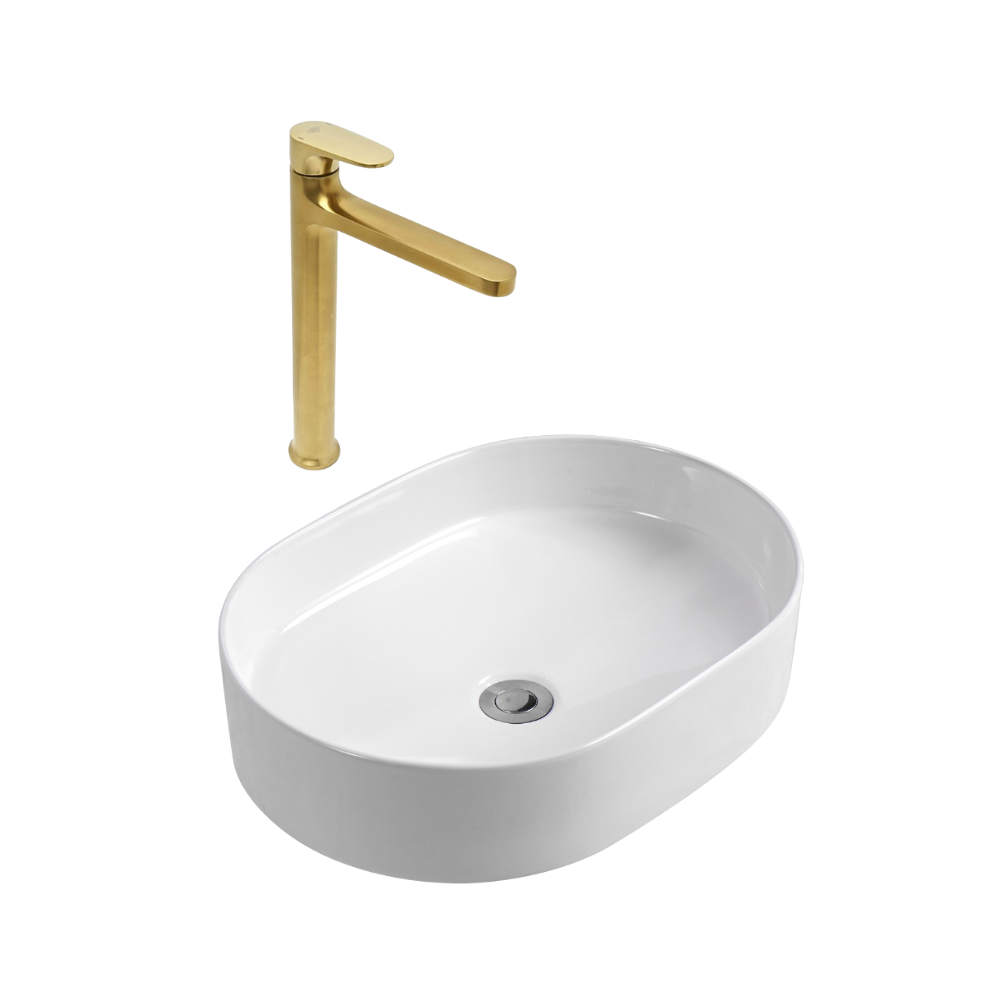 Ceramia DARK mitigeur lavabo XL, or brossé + Ceramia PixL 50x36,5x12 cm vasque à poser, sans trop-plein, blanc (SAT285PBZCEPX5037)