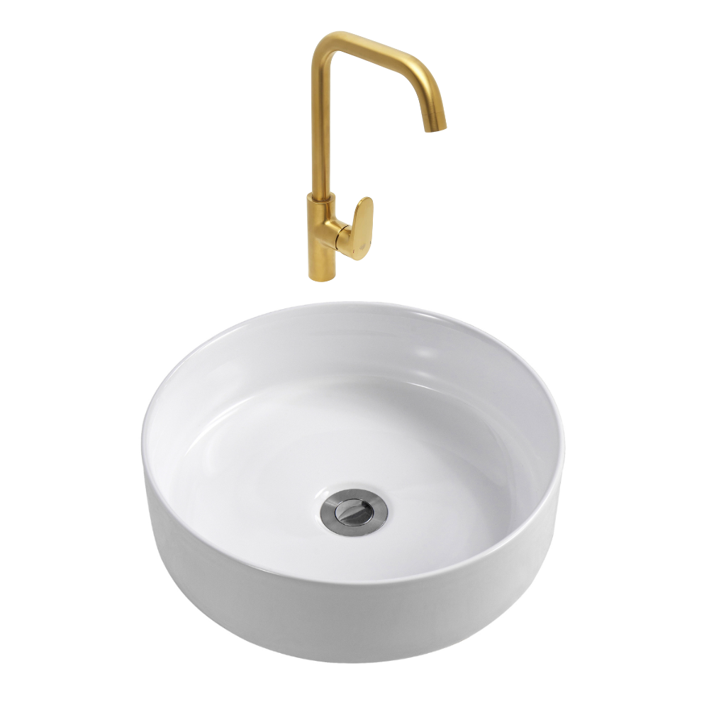 Ceramia DARK mitigeur lavabo pivotant, or + Ceramia PixL 36x12,5 cm vasque à poser, sans trop-plein, blanc brillant (SAT280LBZCEPX3636)