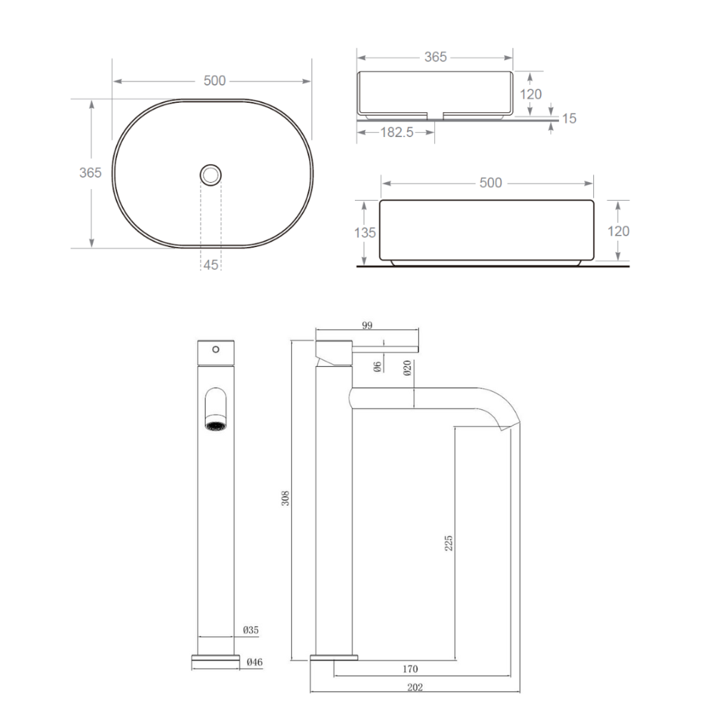 Ceramia Aurum mitigeur lavabo en inox, or rose + Ceramia PixL 50x36,5x12 cm vasque à poser, blanc (SAT285BRGCEPX5037)