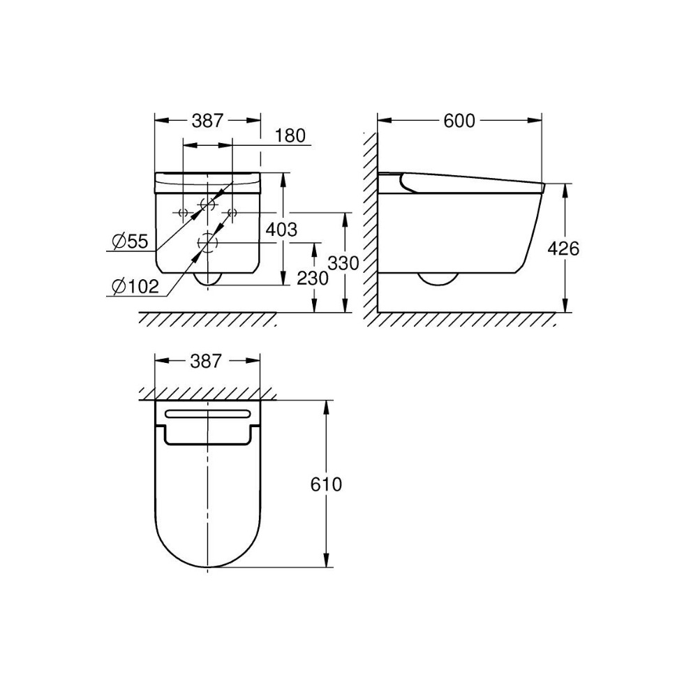 - GROHE Power flush : cuvette sans bride associée à la technologie de rinçage GROHE triple Vortex