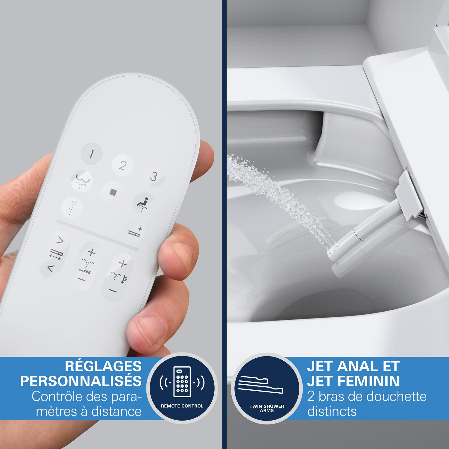 - 2 bras de douche ajustables (1 jet pour l'arrière, 1 jet pour la douchette féminine)